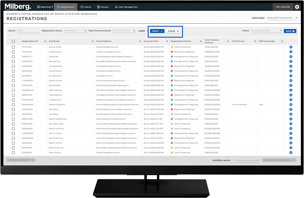 Once the values to search are specified, select the Apply button to conduct the search and see the results displayed in the grid.